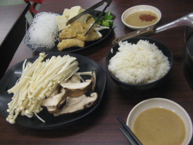 洋蔥切片、木耳、百頁豆腐、米血米粉、飯等都讓你免費吃到飽,