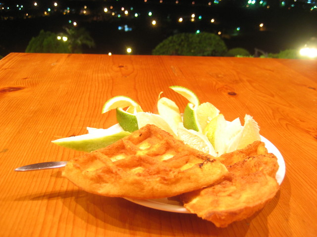 這是宵夜餐點所附的鬆餅及水果。(可以和店家要一些蜂蜜哦!)