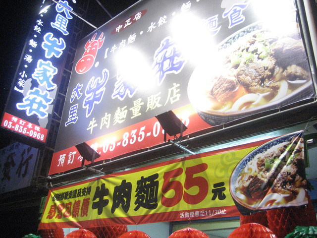 條,上面寫著「回聵鄉親,牛肉麵55元」(這活動到2008/11/30止)